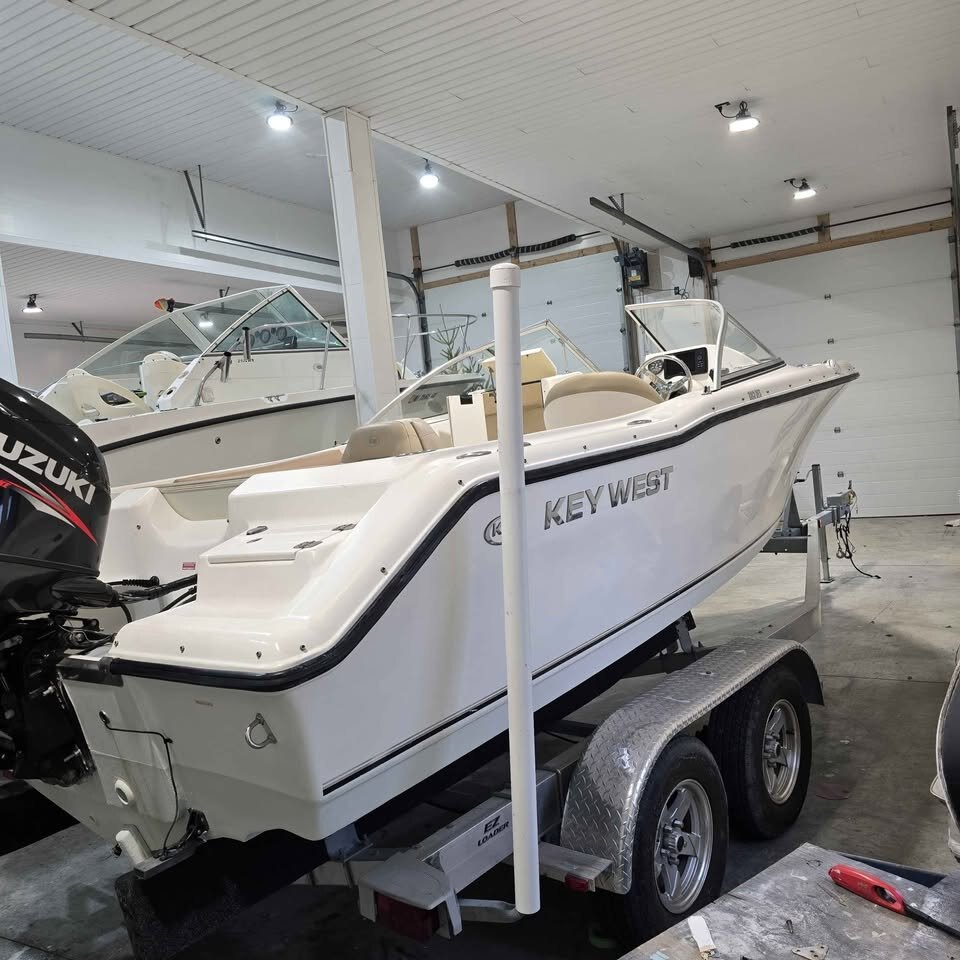 2015 Key West 203 DC. Very well powered with a 140 Hp Suzuki 4 stroke. Has updated electronics , fresh water system , Bimini top , porta potty , marine stereo , dual batteries on a switch all sitting on a new 2023 Tandem axle trailer with oil bathed bearings and brakes on both axles. A very very secure investment at just $43 Includes free storage until May 2026 Spring commissioning